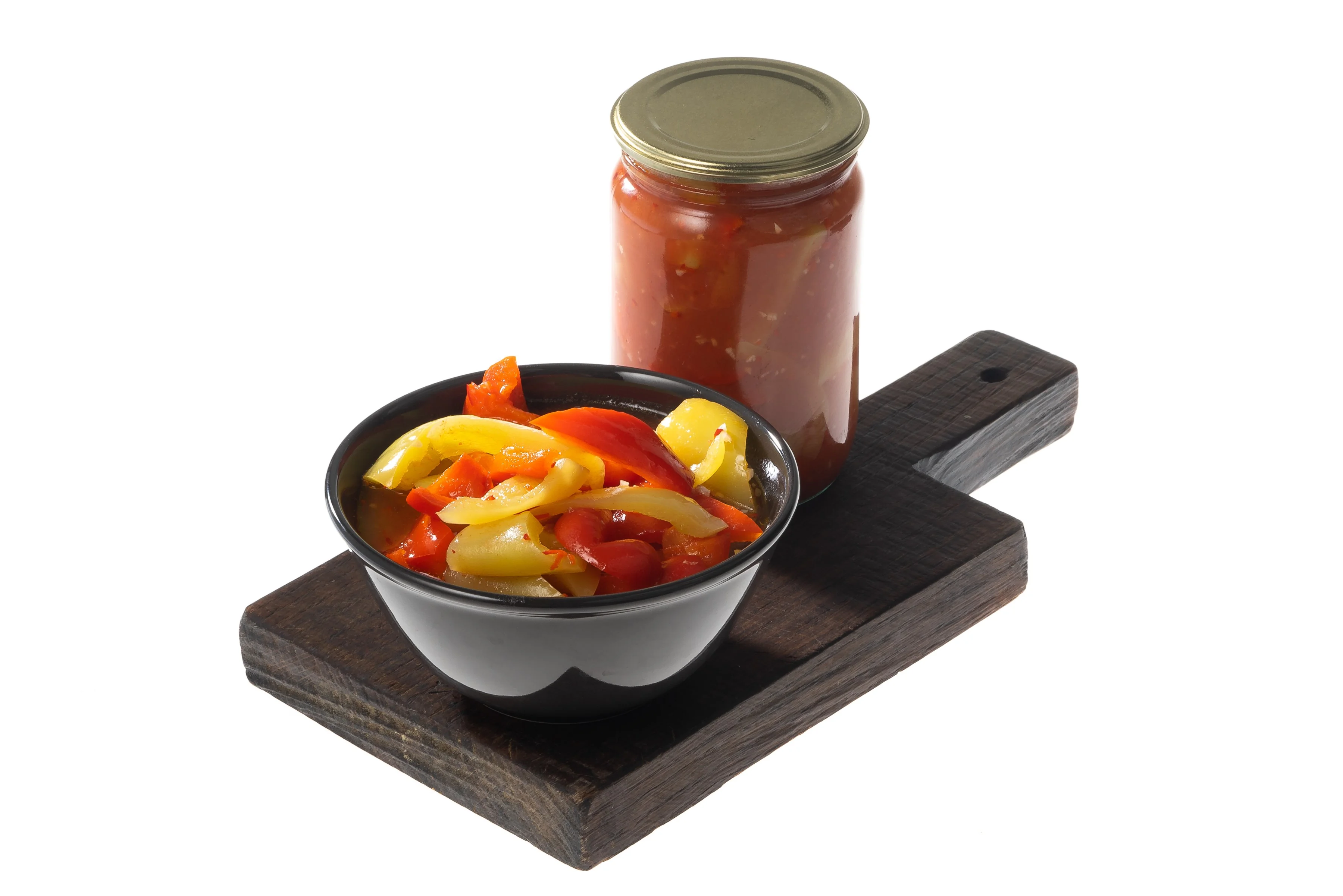 Сладкий перец Помидоры Базилик Перец чили Чеснок Сахар Растительное масло Уксус 9%-ный Соль главная Заготовки Советская кухня Пошаговые рецепты