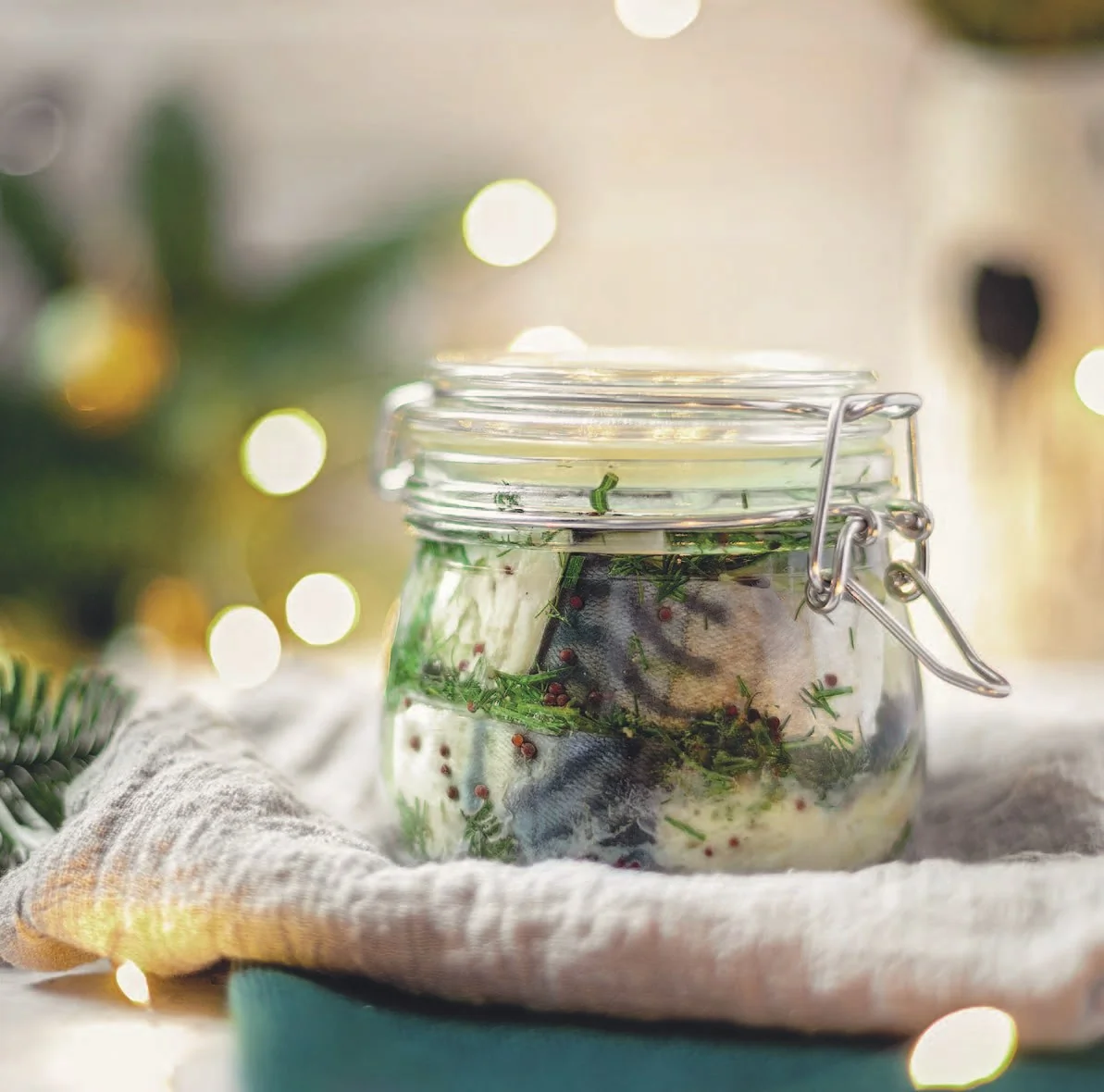 ШАГ 8 Сверху в банку залить уксус и оливковое масло. Рыба будет готова через сутки.