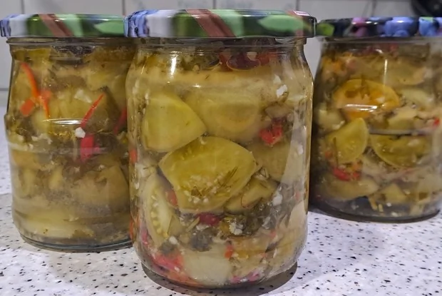 Зеленые помидоры с чесноком и зеленью на зиму