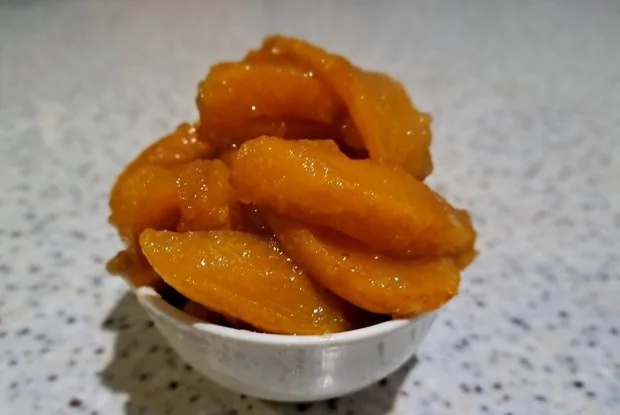 ШАГ 3 Нарезать подготовленную айву дольками.