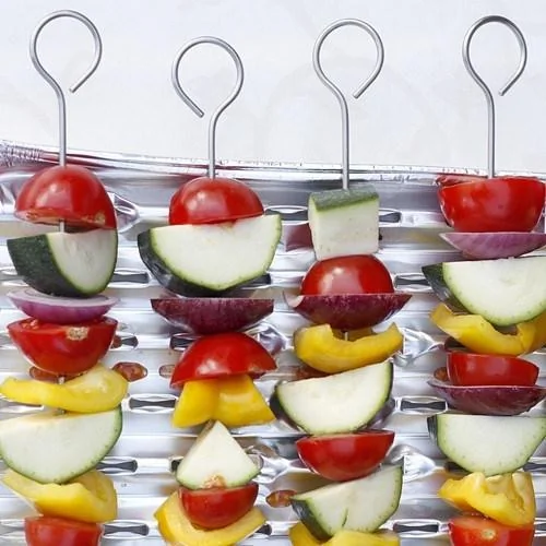 ШАГ 4 Выложите шашлыки на гриль и жарьте 10-12 минут до готовности, пока овощи не станут мягкими и румяными.