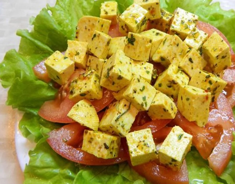 Тофу, маринованный в чесноке, кинзе и лимонном соке