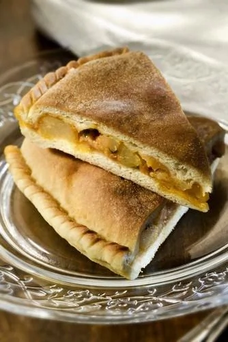ШАГ 4 Выложите половину теста в форму и хорошо прижмите. Срежьте лишнее и наполните начинкой. Сверху выложите кусочки сливочного масла и накройте второй половиной теста. Хорошо защипните и запекайте 40 минут.