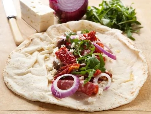 Фахитас с разноцветными перцами, кабачками и рукколой