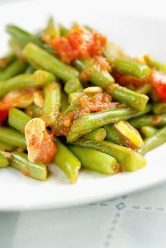 Зеленая фасоль с вялеными томатами и чесноком
