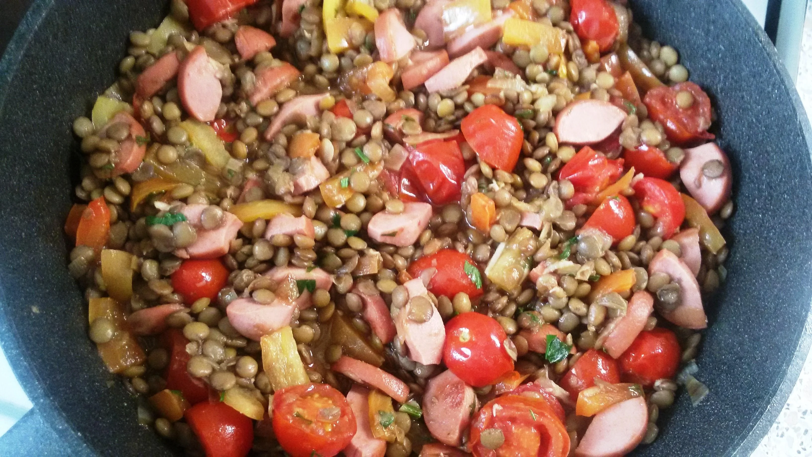 Тушеная чечевица с томатами и петрушкой по итальянски