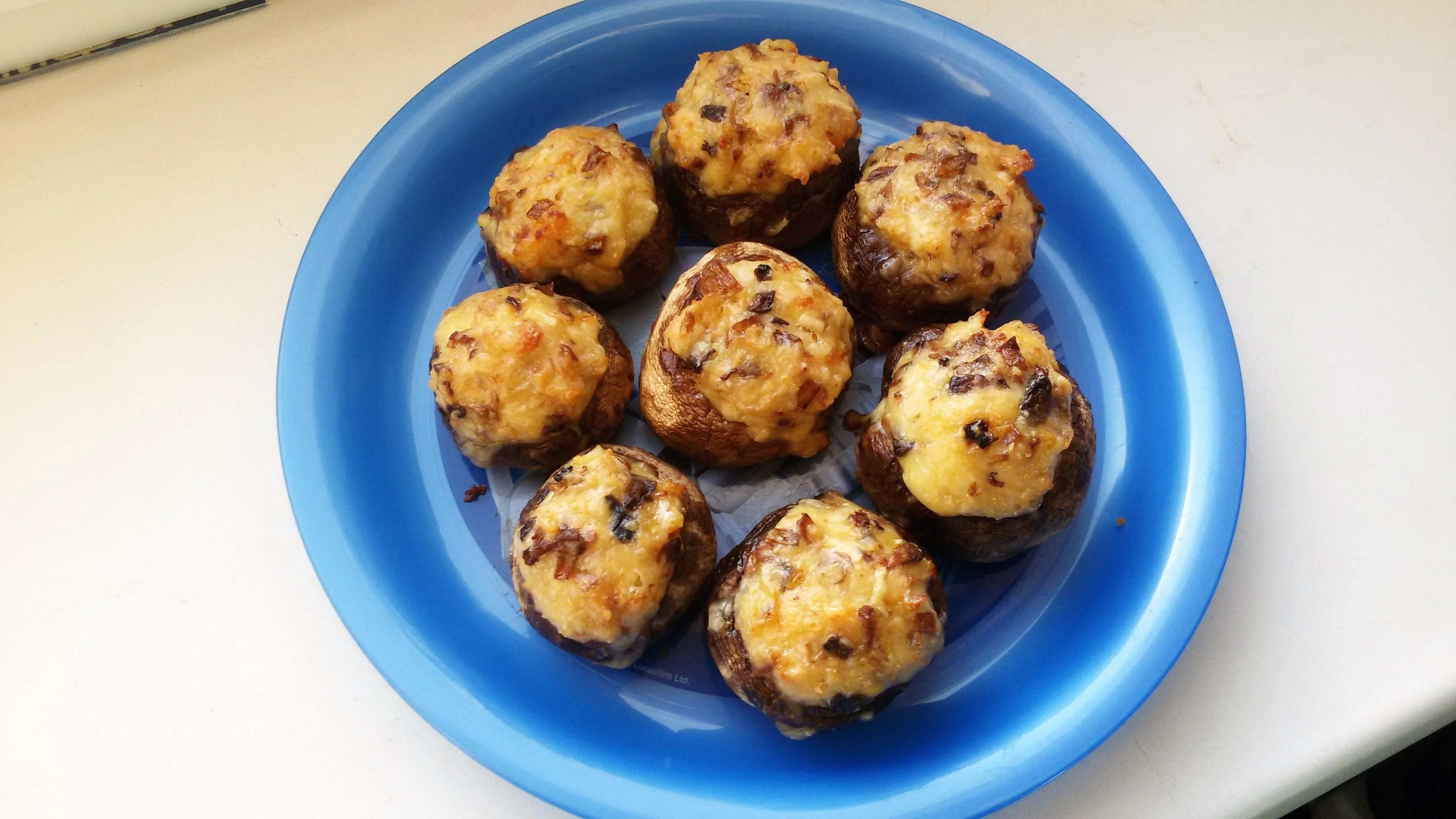 Грибные шляпки, фаршированные сырно-мясной начинкой