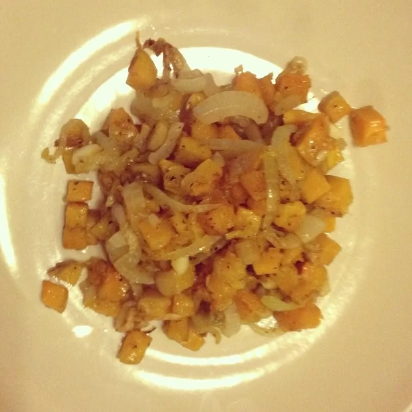 Жареная тыква баттернат с карамелизованным луком, горгонзолой и хрустящим шалфеем