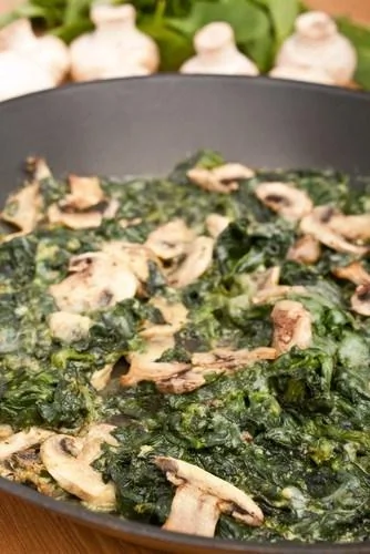 Сливочный шпинат с грибами и пармезаном