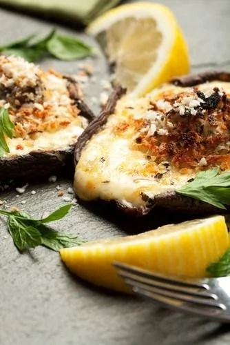 Грибы, фаршированные рикоттой, фетой и шпинатом, под корочкой из пармезана