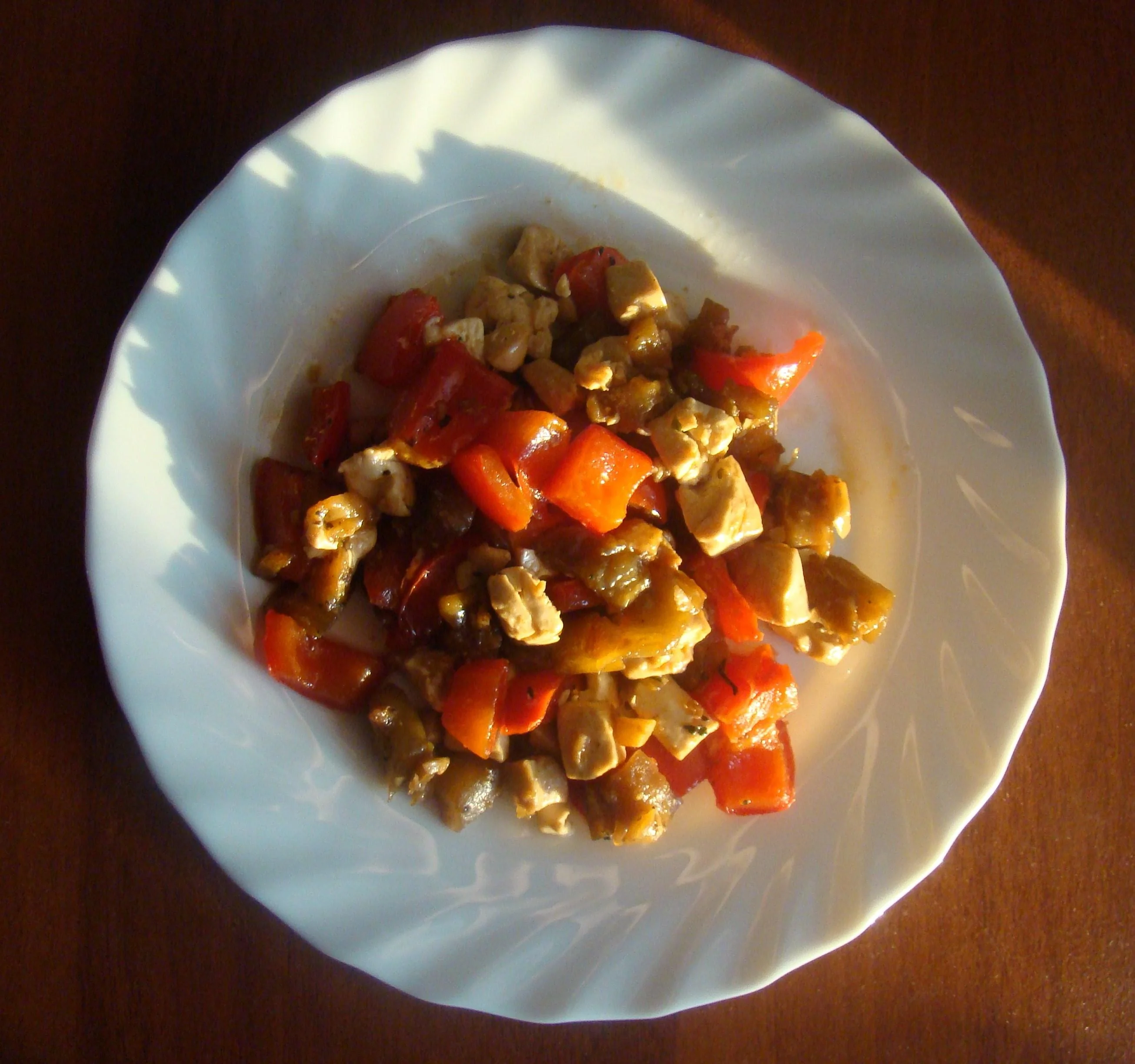 Ингредиенты для приготовления Жареные баклажаны с красным перцем и тофу: