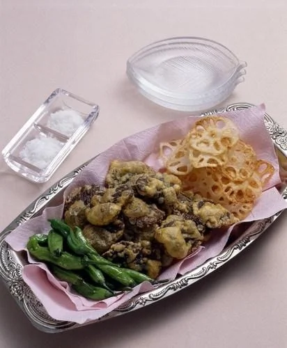 Золотистые грибы в кляре с зеленым луком