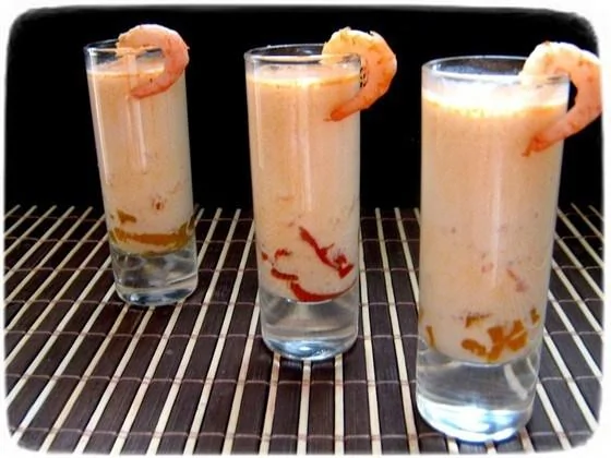 ШАГ 20 Сверху налить биск и украсить креветкой.