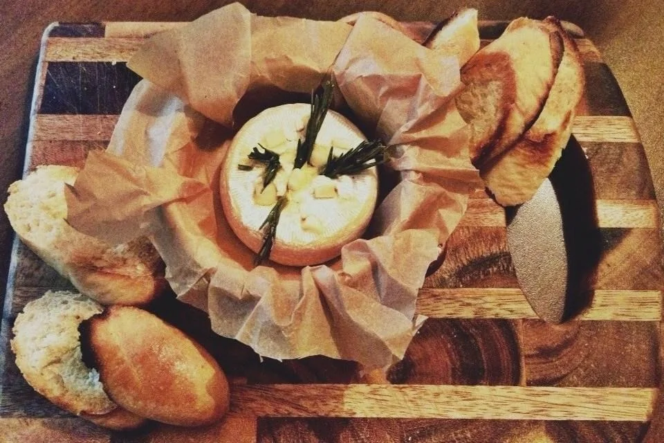 Запеченный камамбер с тимьяном, чесноком и чесночным хлебом