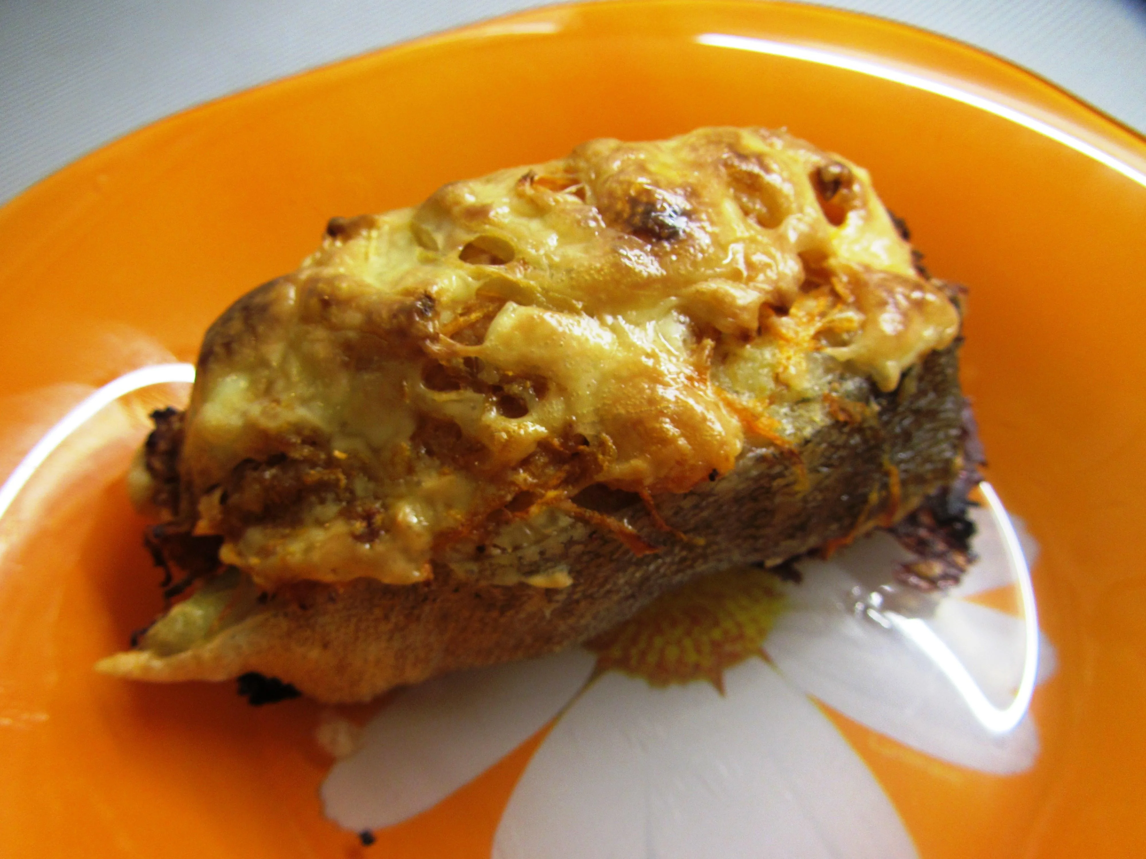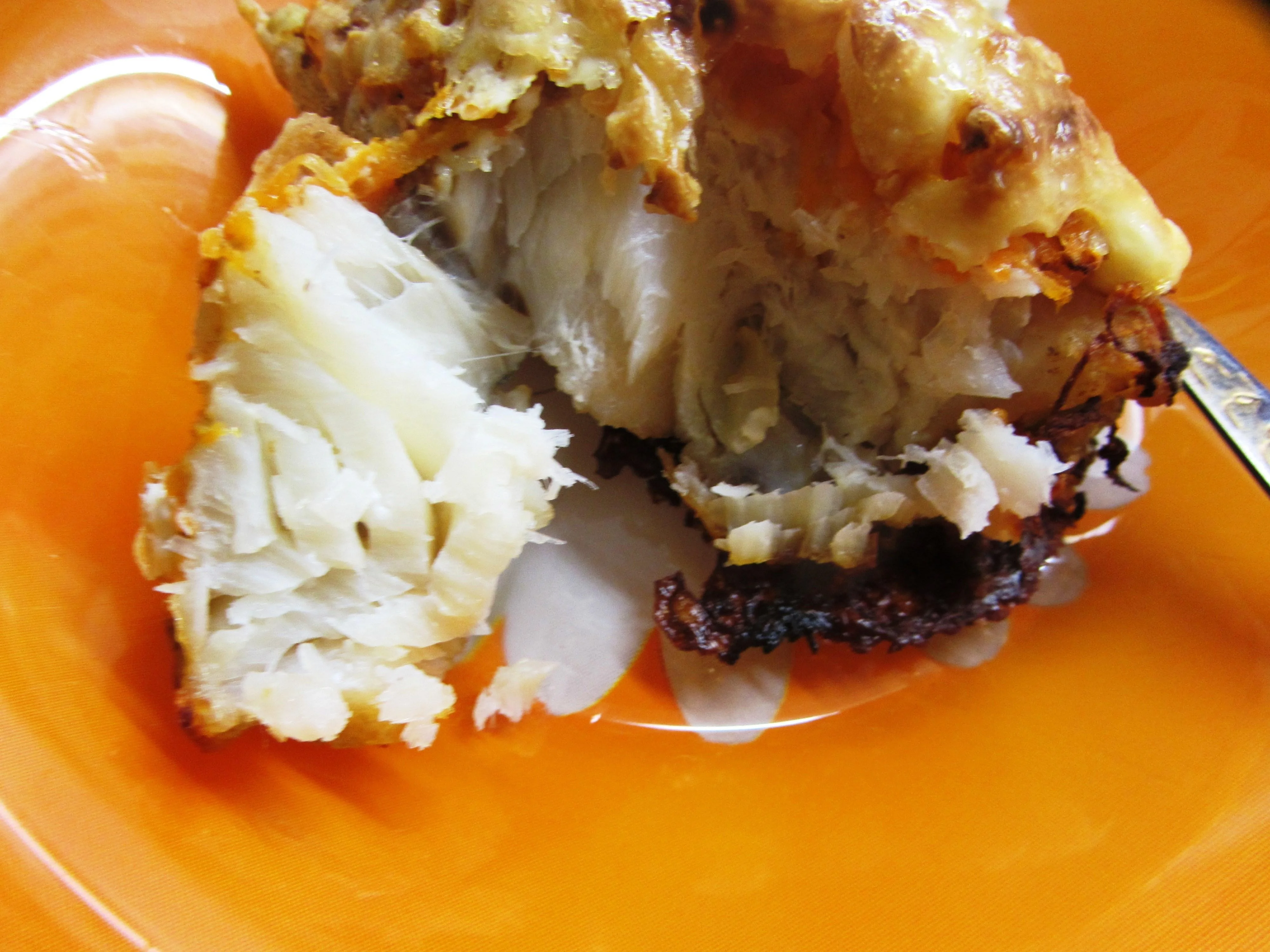 ШАГ 3 Выложить рыбу в огнеупорную форму или сковороду, предварительно смазанную растительным маслом. Сверху выложить слой тертой моркови, а затем — лука, сверху равномерно залить все майонезом.