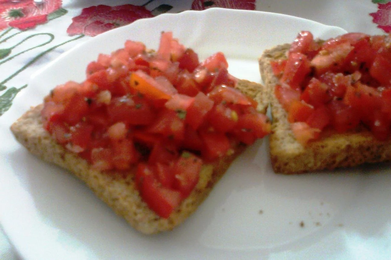 Поджаренный хлеб (bruschette) с помидорами и базиликом