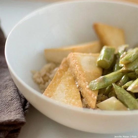 Жареный тофу со спаржей в апельсиновом соусе