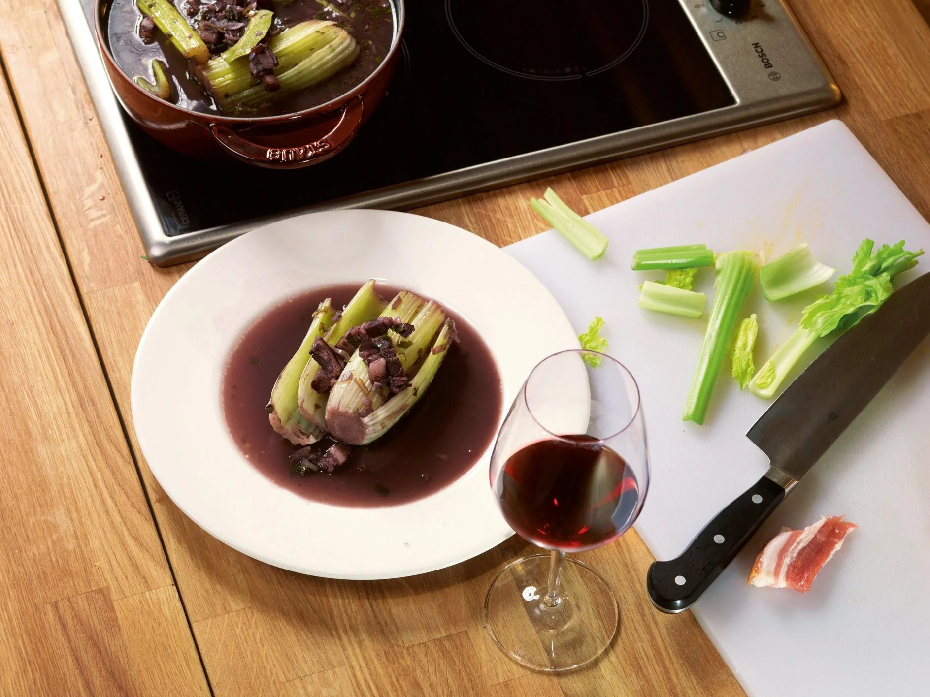 Ингредиенты для приготовления Сельдерей с вином и беконом: