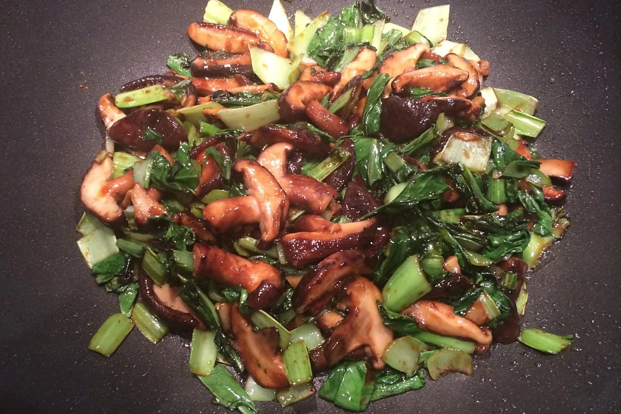 Пак-чой с грибами и кунжутом