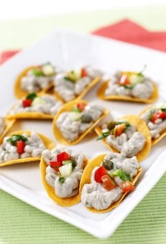 ШАГ 1 В блендере смешайте тунца (слив жидкость), рикотту, оливковое масло, лимонный сок и кайенский перец. Взбейте до однородной массы и переложите в миску.