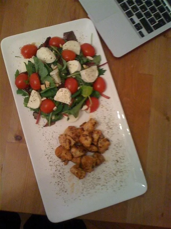 Летняя легкая закуска из курицы, зелени и моцареллы