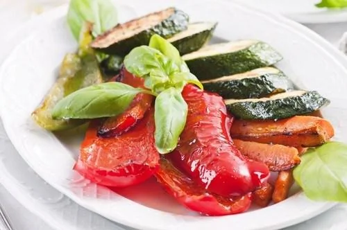 Цукини, тыква и перцы на гриле со свежим базиликом