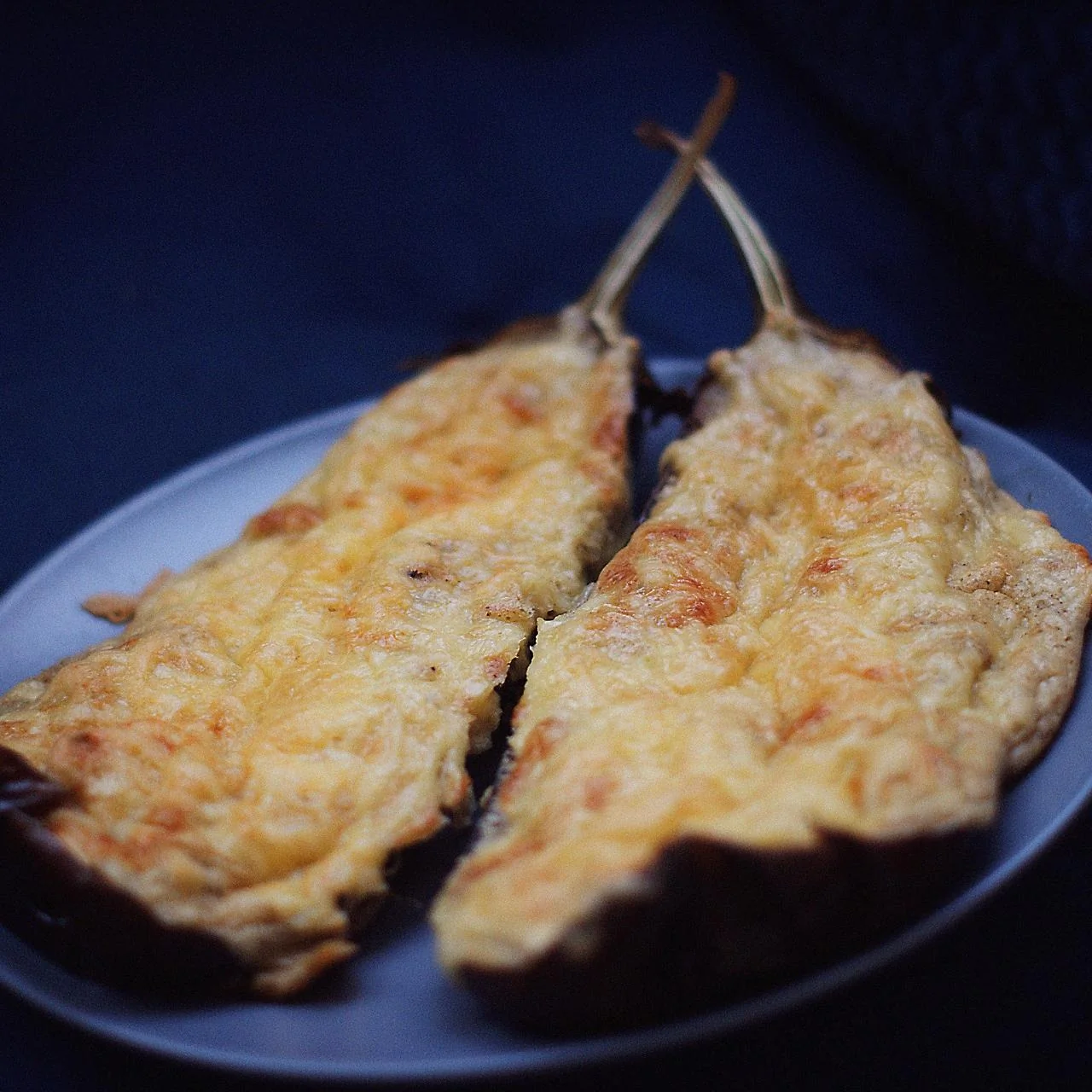 ШАГ 13 Наполнить баклажаны приготовленной смесью, посыпать пармезаном.