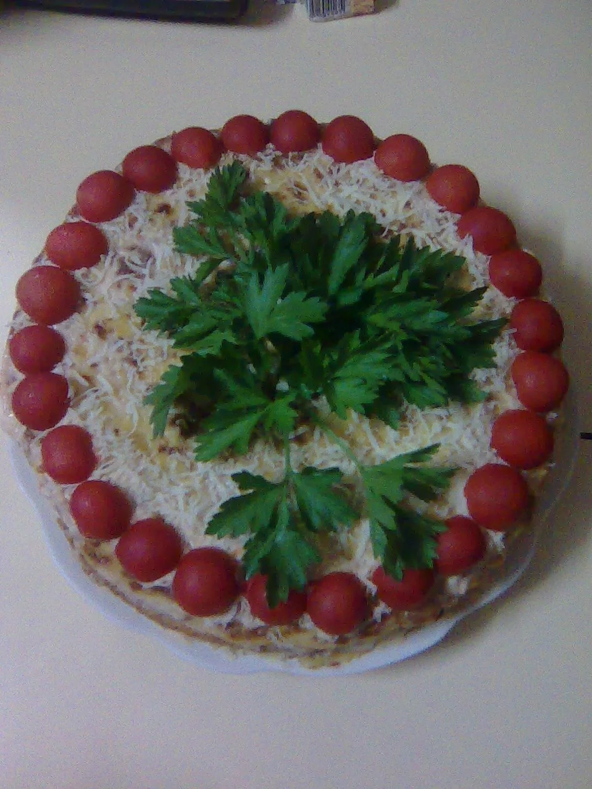 ШАГ 4 Коржики (наши блинчики) складывать друг на друга, обильно промазывая майонезным кремом, т.к. они будут хорошо впитывать крем.