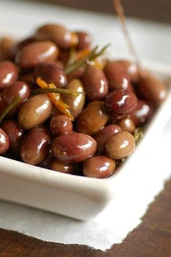 ШАГ 2 Тем временем, переложите оливки в миску, залейте горячим маслом и перемешайте. Сразу подавайте.