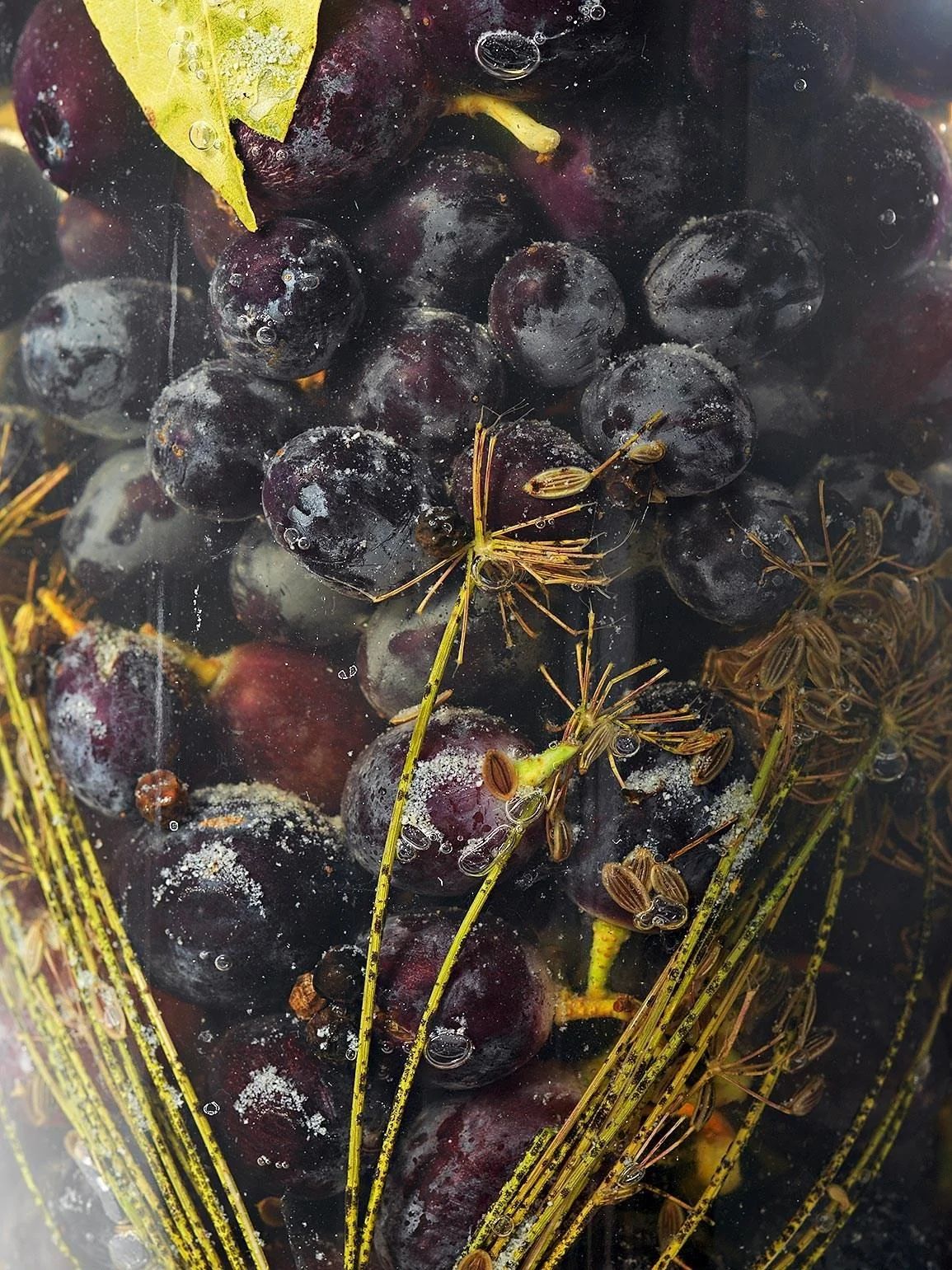 ШАГ 3 Дать жидкости покипеть минуту, пока растворится сахар, а затем снять с огня и залить в банку с виноградом. Дать постоять как минимум сутки.