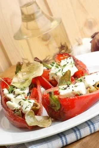 Печеные фаршированные сладкие перцы с черри, фетой и тимьяном