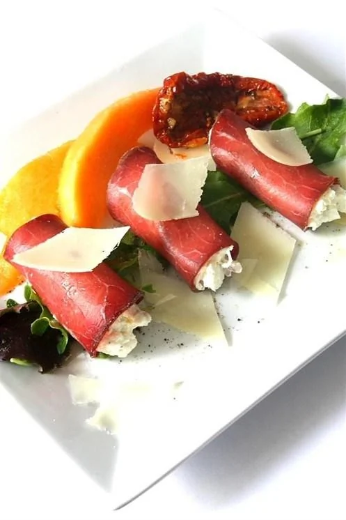 Рулетики из брезаолы с козьим сыром