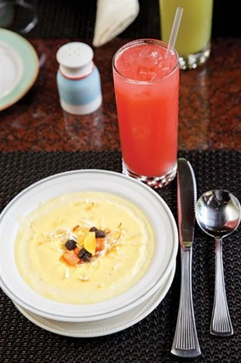 Молоко Кукурузная мука Соль Сгущенное молоко Кокосовое молоко Молотая корица Ванильная эссенция Молотый мускатный орех Закуски Карибская кухня Мамалыга Каши