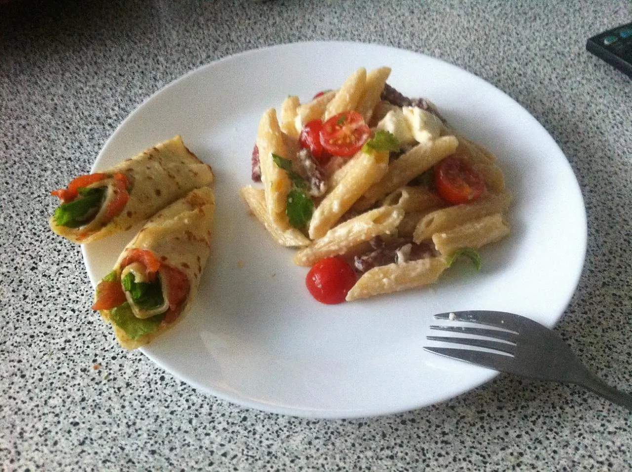 ШАГ 1 Лаваш смазать сыром филадельфия, сверху уложить листья салата.