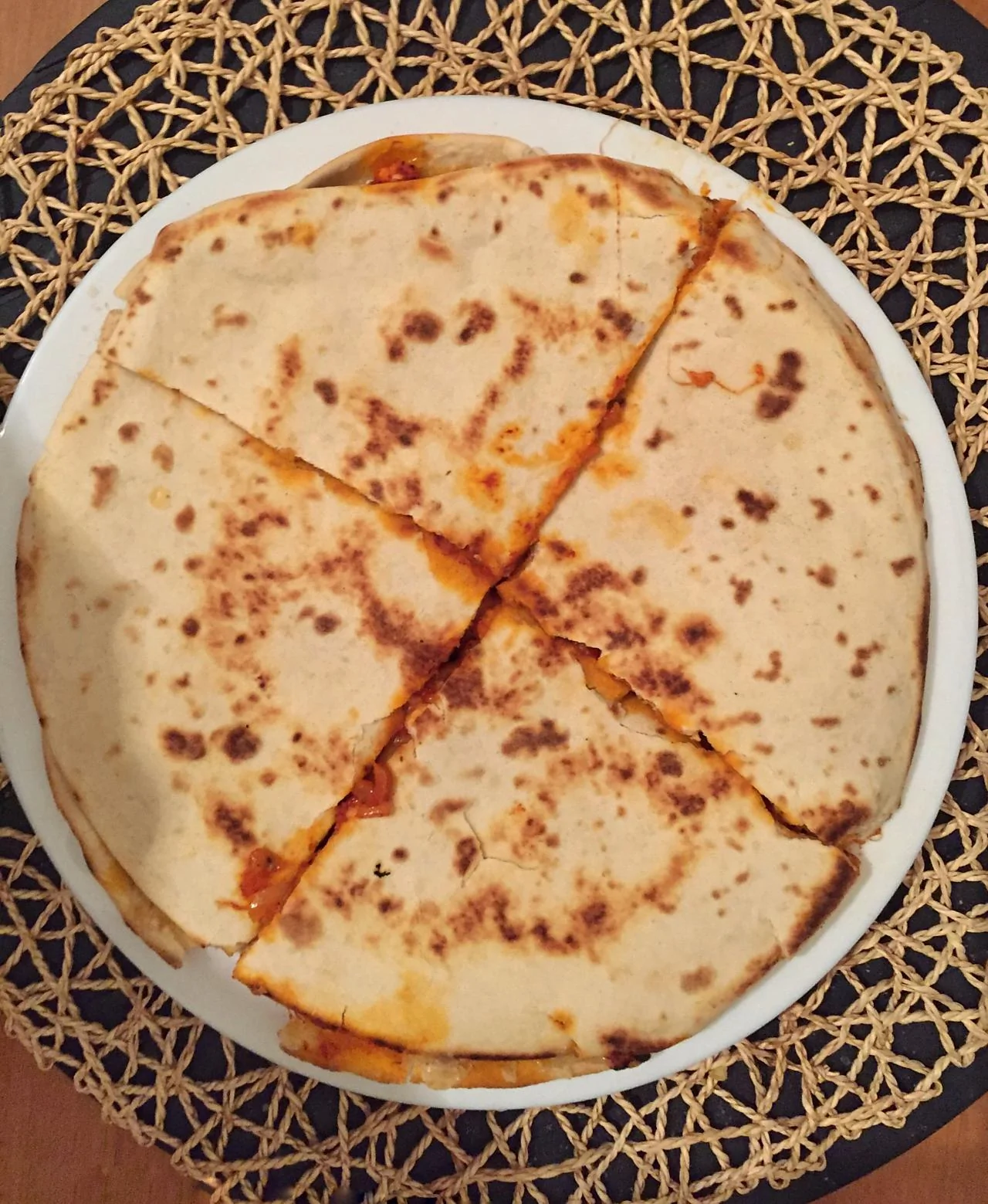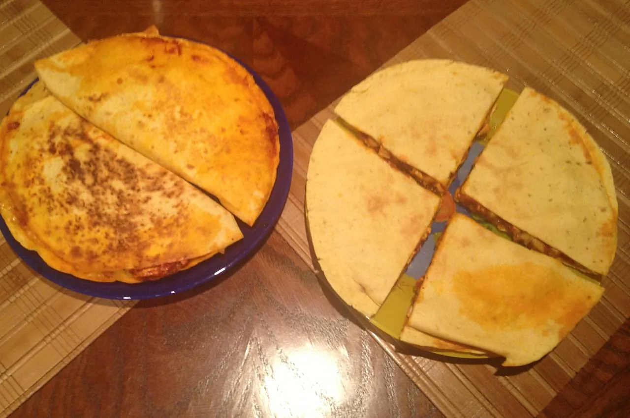 ШАГ 7 Нарезать кесадилью на четыре части.