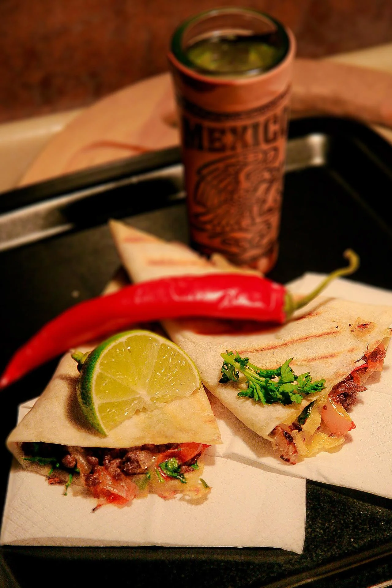 ШАГ 4 Кесадалью подадим с гуакомоле, сальсой и сметаной, нальем текилы и будем радоваться вместе с друзьями новым открытиям и вкусам!
