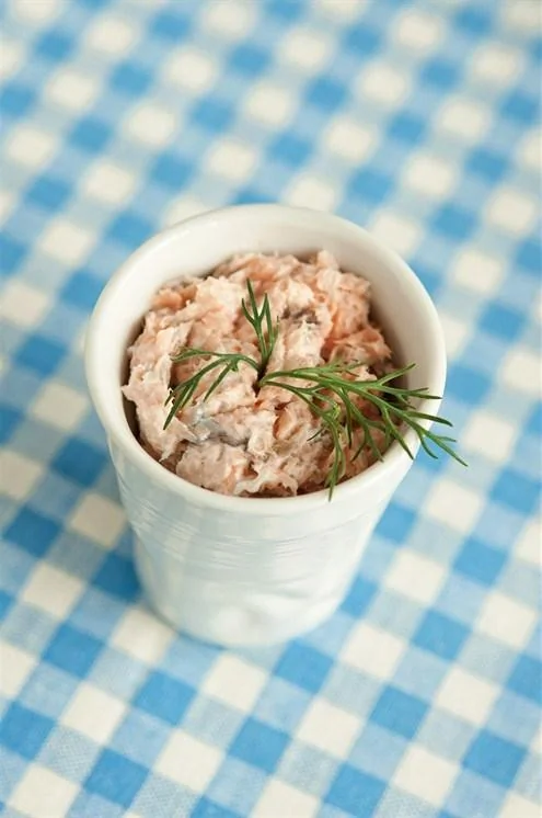 ШАГ 2 Рикотту размять с йогуртом, добавив сок лимона, хрен, соль и перец. Смешать с рыбной массой и убрать в холодильник до подачи, чтобы вкусы перемешались.
