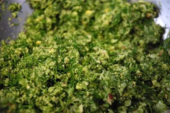 ШАГ 3 Зелень и чеснок нарезать очень мелко.