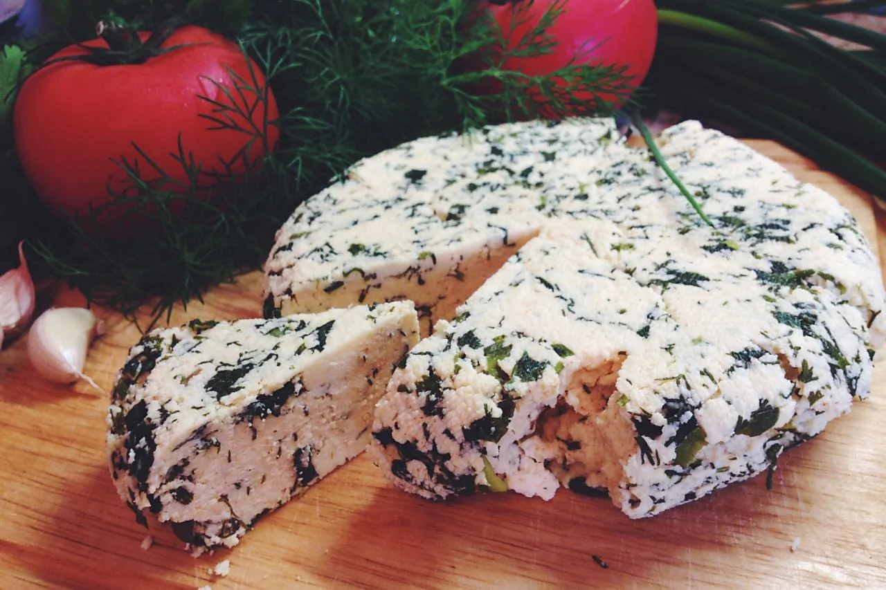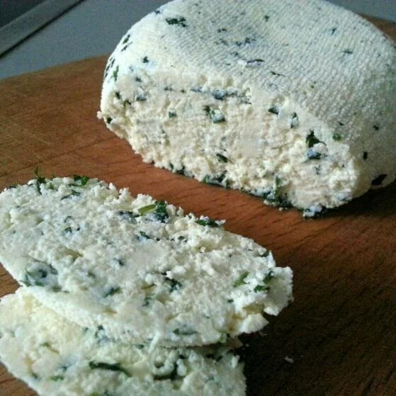 Домашний сыр с зеленью и тмином
