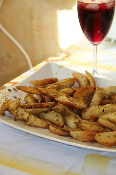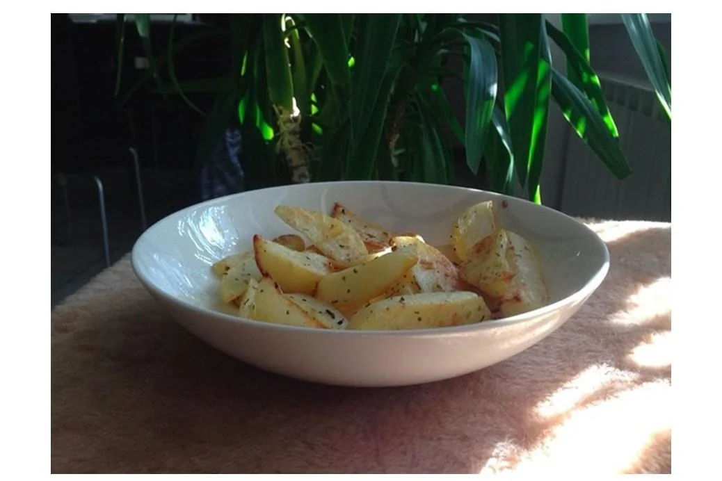 ШАГ 6 В это время замешиваем травы с оливковым маслом и поливаем картофель этой смесью.