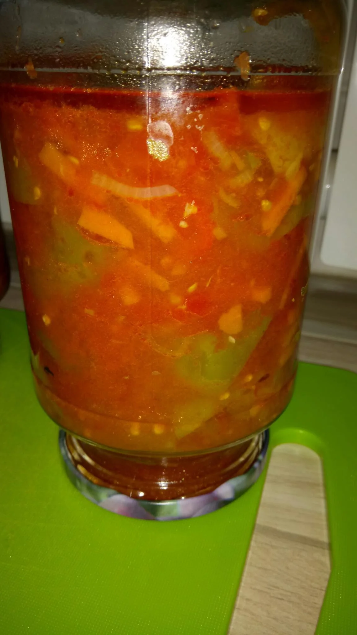Сладкий перец Помидоры Морковь Лук репчатый Чеснок Свиное сало Сладкая паприка Белый винный уксус Сахар Соль Закуски Венгерская кухня Лечо
