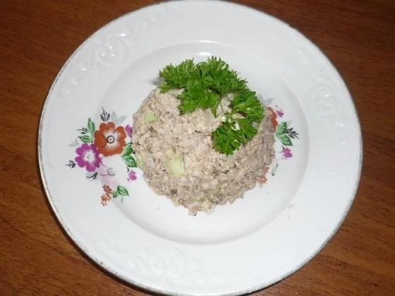 ШАГ 3 Тунца размять вилкой, огурец отчистить от кожуры и мелко нарезать.