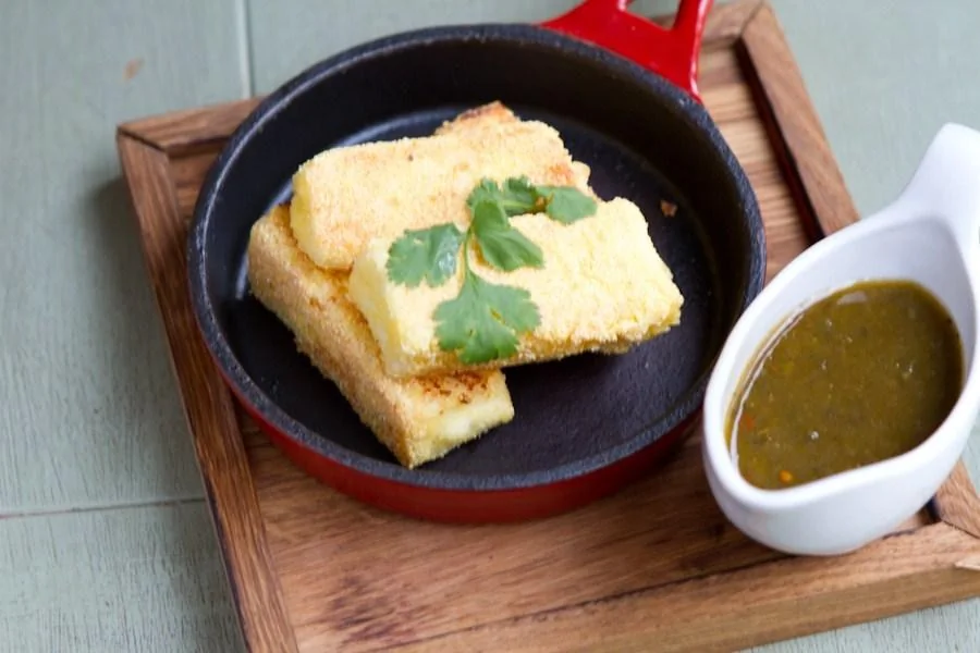 ШАГ 5 Обмакните каждую палочку в слегка взбитом яйце, обваляйте в кукурузной крупе и обжарьте на растительном масла до золотистой корочки.