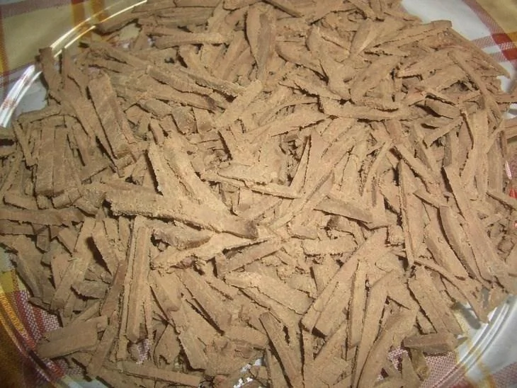 ШАГ 1 Печень отварить до готовности. Остудить. Нарезать соломкой, посолить.