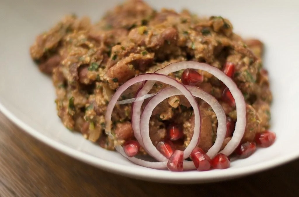 Лук репчатый Томатная паста Красная фасоль Листья сельдерея Растительное масло Петрушка Соль Красный перец чили Чеснок Сушеный базилик Закуски Лобио