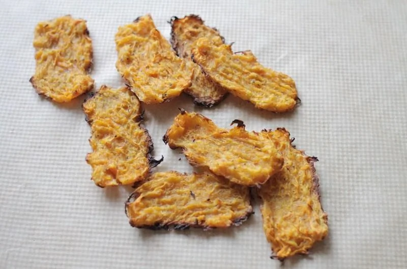 ШАГ 1 Тыкву (примерно, четверть небольшой тыквы) режем на средней величины фрагменты и кладем на противень. Важно тыкву не чистить и нарезать так, чтобы каждый кусок был с коркой. Корка нужна как раз для того, чтобы кусок тыквы лежал на ней, а не на стороне мякоти — иначе сок вытечет, а тыква пригорит. Ставим в духовку, разогретую до 180–200 градусов, и забываем о ней минут на 30.