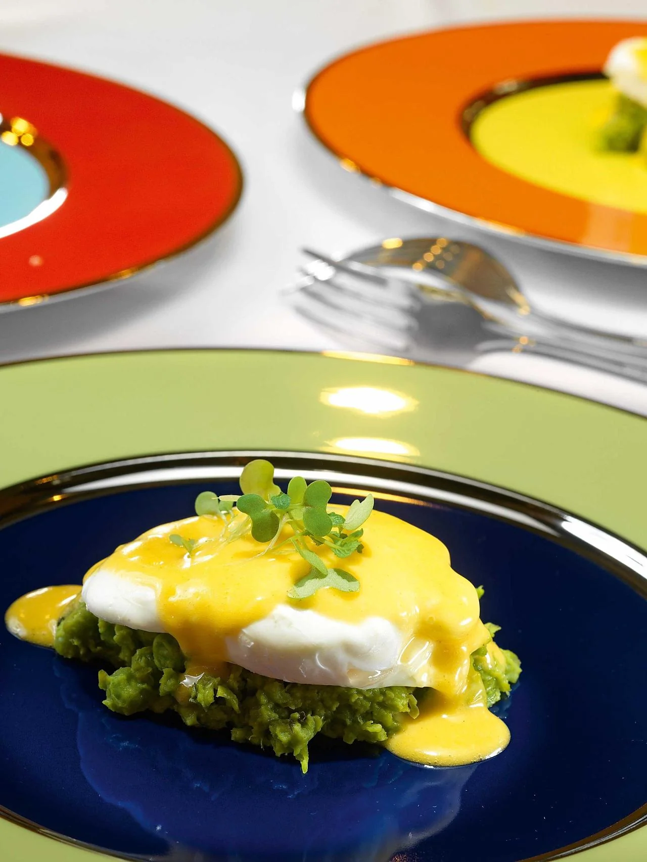ШАГ 6 За двадцать секунд подогреть яйца в горячей воде. Выложить на тарелку пюре из горошка, яйцо, полить соусом и подавать.