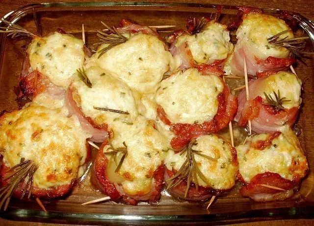 Печеный лук в беконе