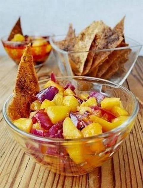Персиковая сальса c чипсами из лаваша со специями