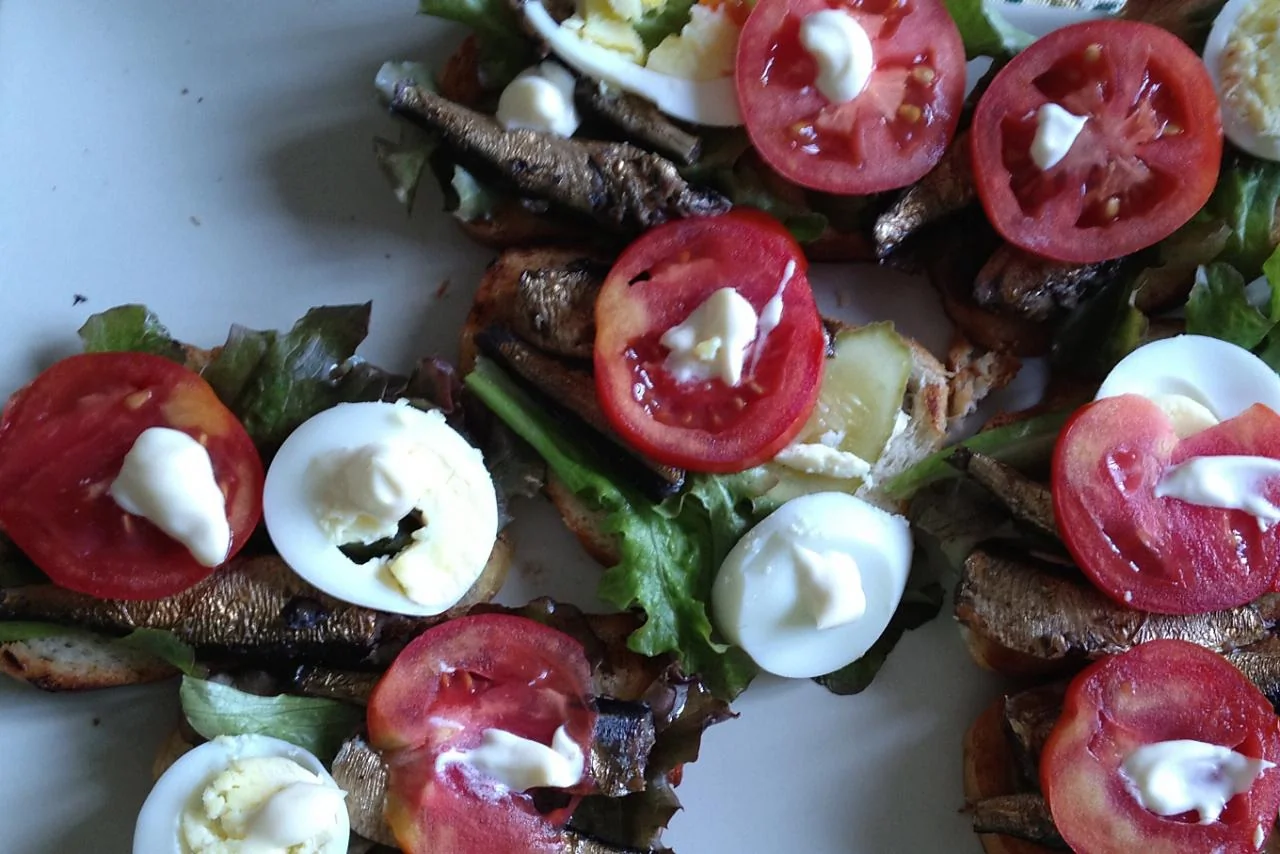 Ингредиенты для приготовления Бутерброды со шпротами, яйцом и помидорами: